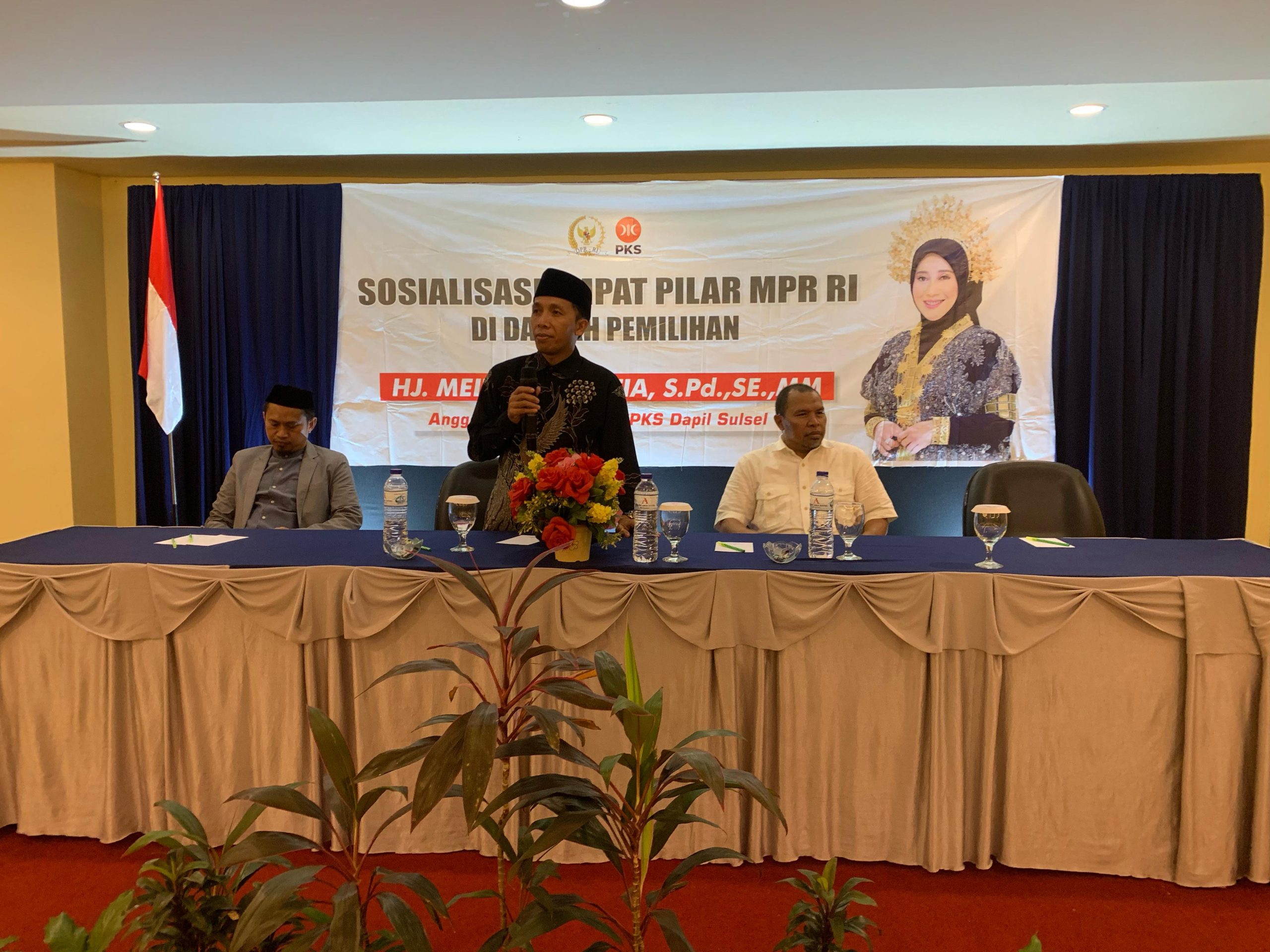 Bertempat di Hotel Grand Asia, anggota parlemen dari Fraksi Partai Keadilan Sejahtera itu menerangkan kembali pentingnya empat pilar dalam kehidupan berbangsa, bertanah air dan bernegara.